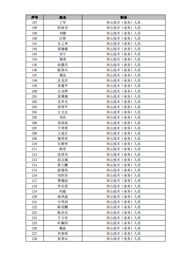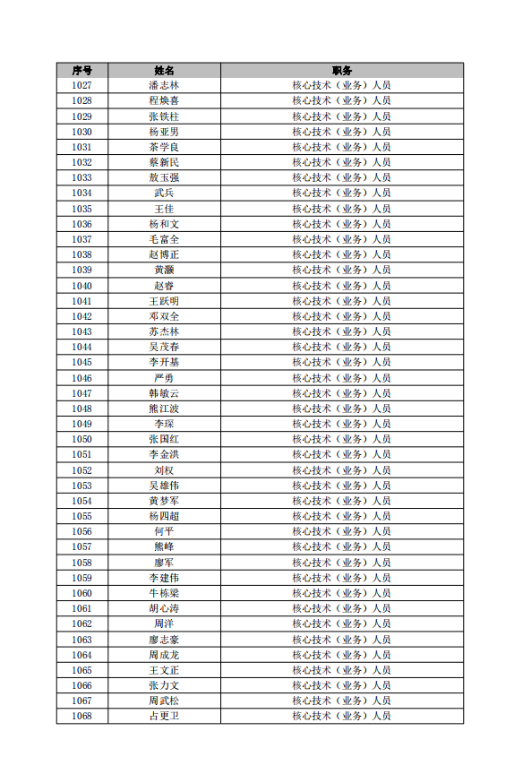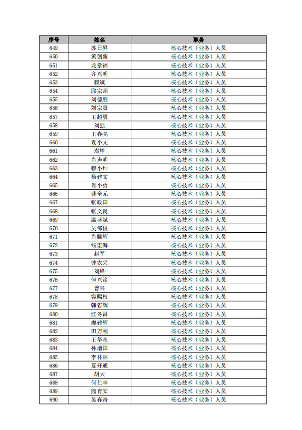 江西正邦科技股份有限公司2019年限制性股票激励计划首次授予激励对象名单