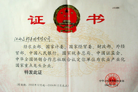 被国家九部委认定为“农业产业化国家重点龙头企业”。